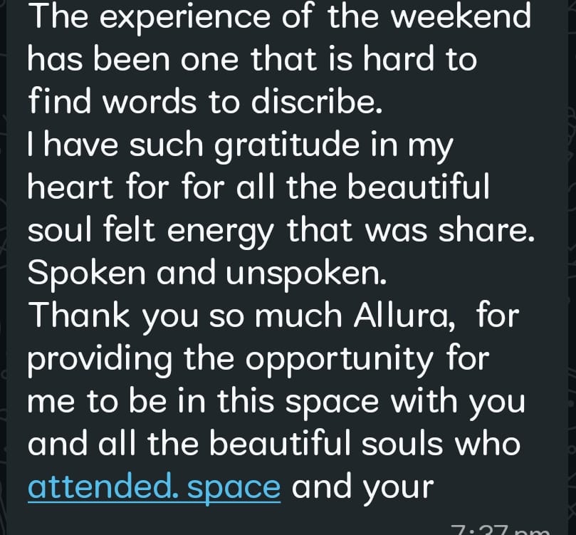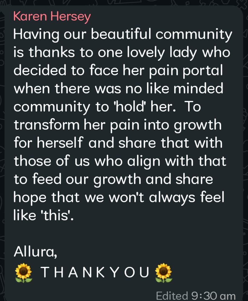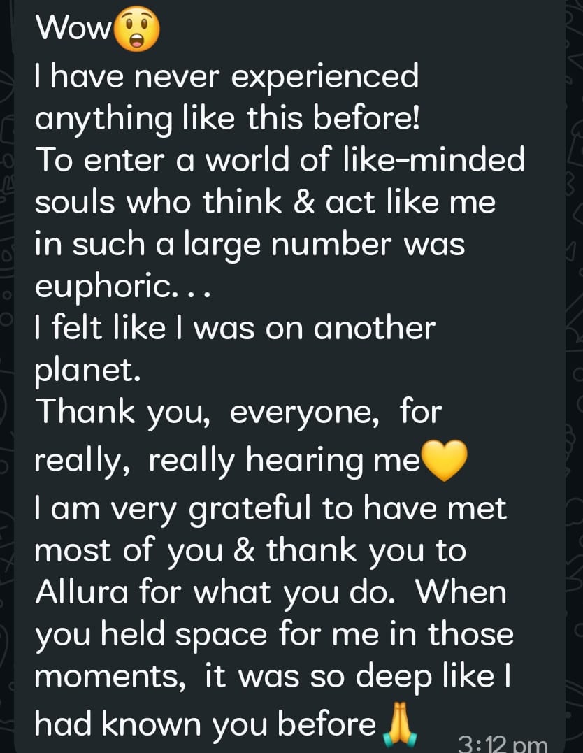 “Across 15 years I saw many therapists and healers but never saw real results. Then I met Allura and it's one of the best decisions I've ever made — tears of happiness fill my eyes.”