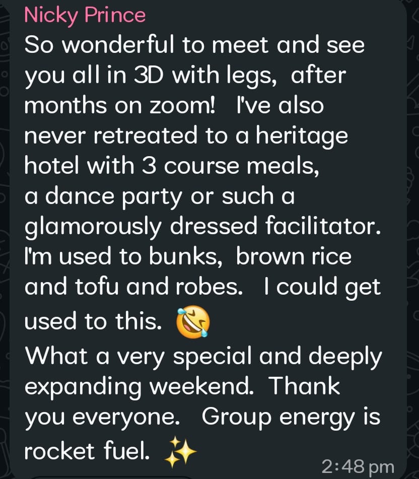Not everyone has dramatic breakthroughs. Some people have quiet, deep recognitions. Both are profound. You'll learn the framework, have direct experiences (even subtle ones), and leave with practices for life. Trust your unique process.